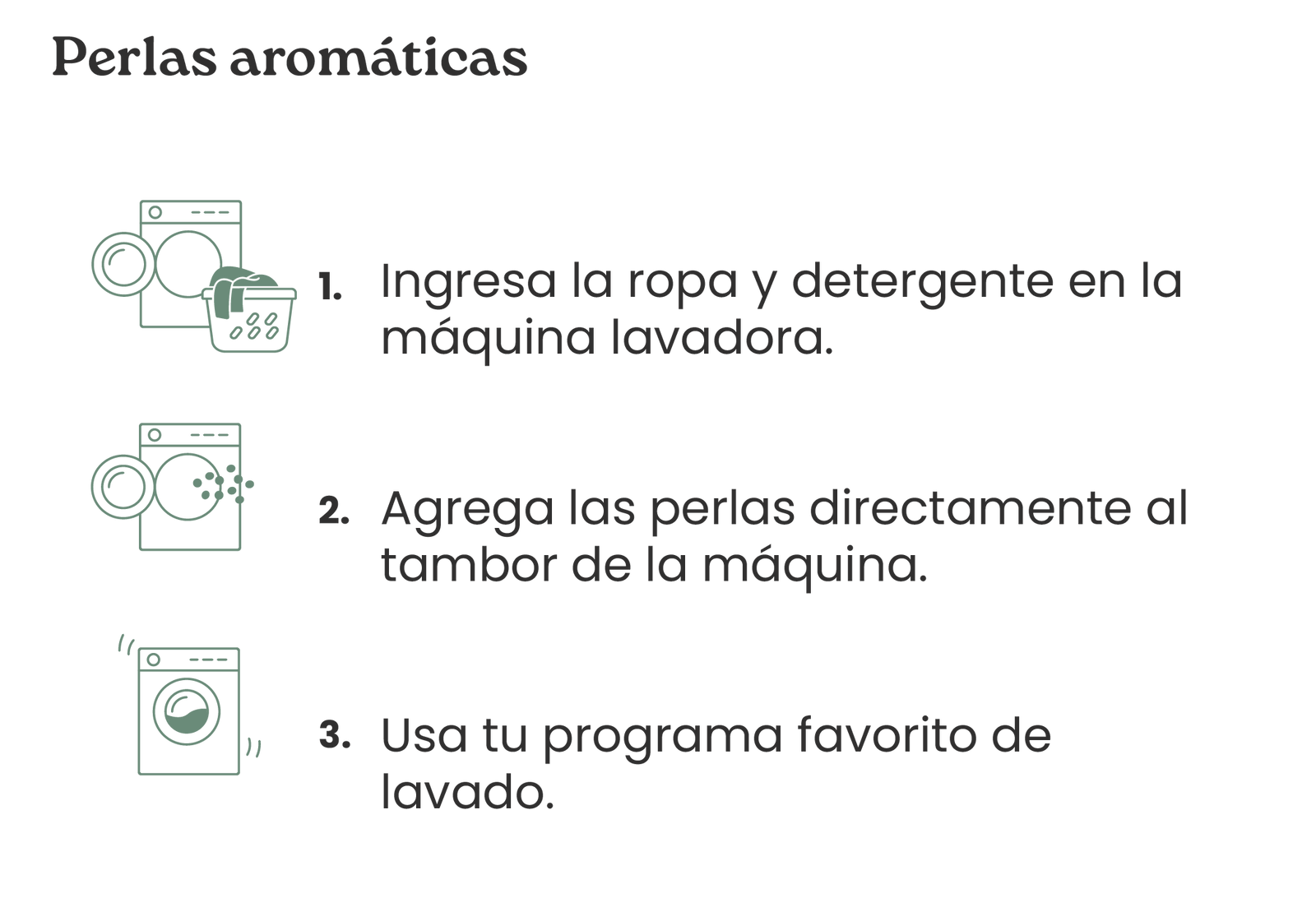 *Estas medidas son un referente estándar, utiliza la cantidad de perlas según la intensidad de aroma que prefieras en tu ropa.