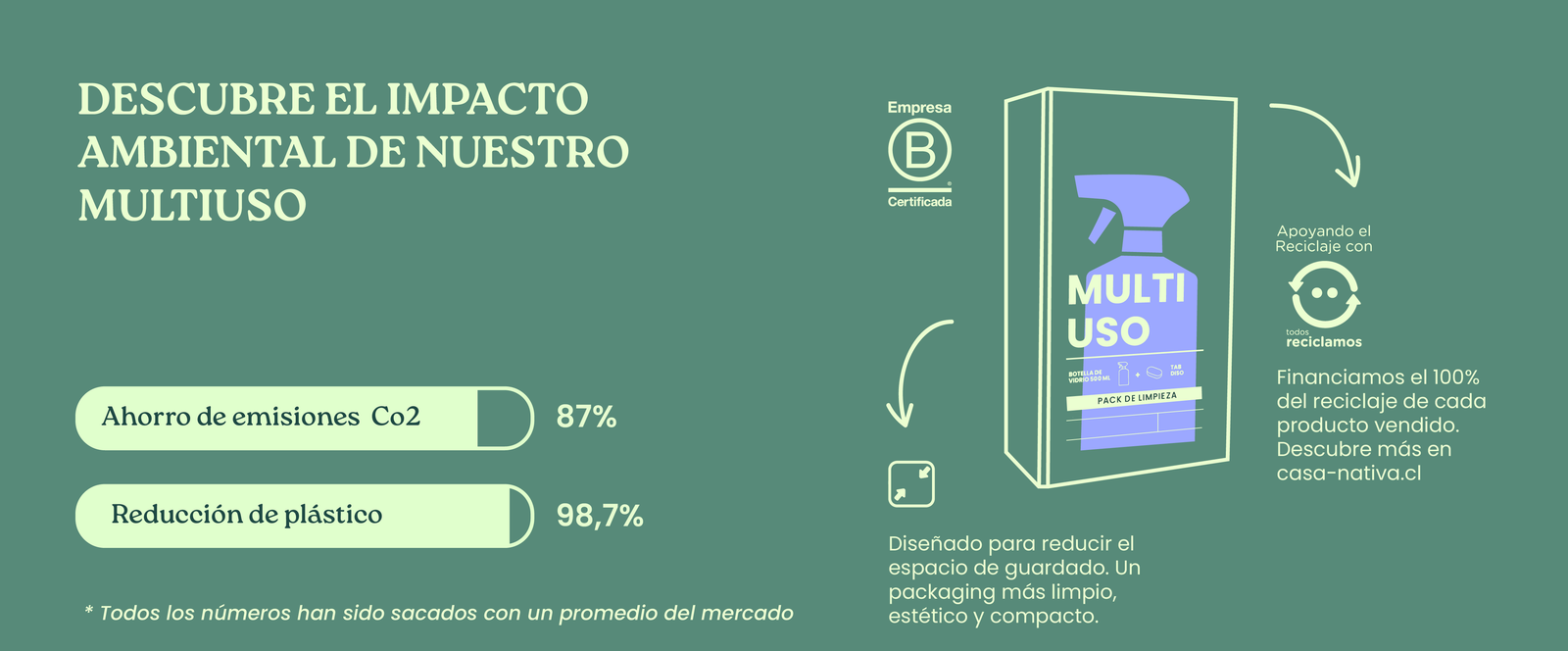 ULTRACONCENTRADO · SIN COMPONENTES TÓXICOS · BAJA HUELLA DE CARBONO · LIBRE DE BOTELLAS PLÁSTICAS
