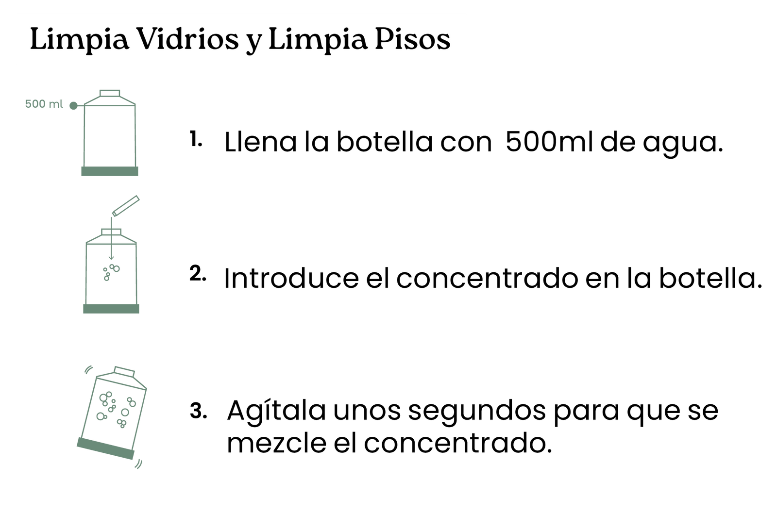 *Si tienes una botella con otras dimensiones, solo mantén la proporción 1:50. Ejemplo: Para botellas de 300ml, utiliza 6ml del tubo.