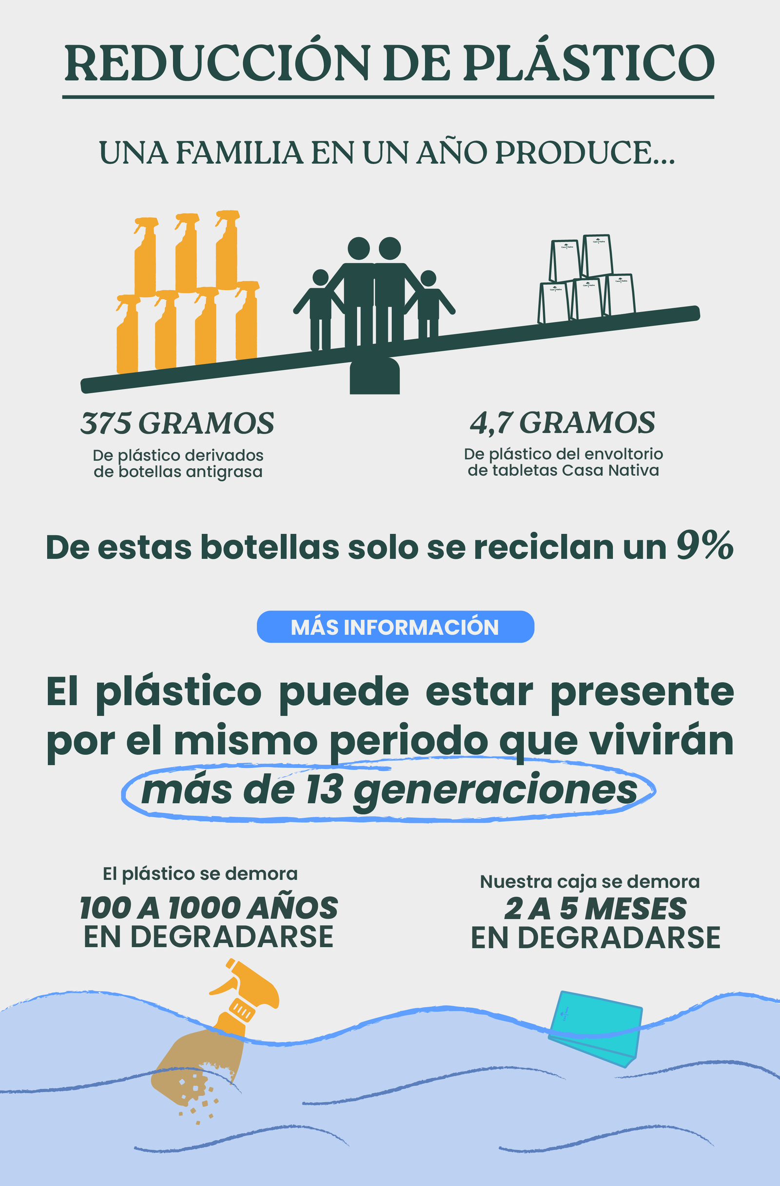 El uso de estas tabletas no solo ayuda a eliminar manchas y grasa en superficies de cocina, también cuida al planeta mediante su formulación y proceso productivo.
